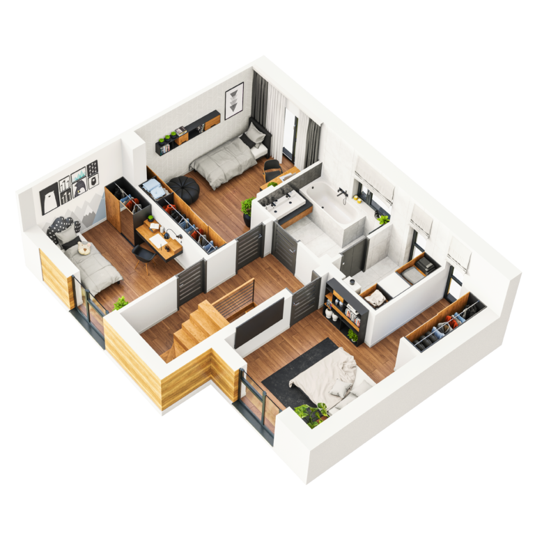 Nie będzie żadnych problemów z parkowaniem samochodu – masz do dyspozycji dwa miejsca postojowe przed budynkiem. Wszyscy mieszkańcy mogą korzystać z pełnej infrastruktury osiedla oraz prywatnego terenu rekreacyjnego o powierzchni ponad 4000 m², położonego wzdłuż rzeki Głuszynki. Ten zadrzewiony obszar będzie zagospodarowany – znajdzie się tam plac zabaw, miejsce na ognisko i zewnętrzna siłownia.